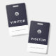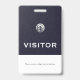 Keep track of visitors and ensure the return of your badges with this blue visitor badge featuring a brushed metallic silver seal emblem logo that can be customised for your brand with a customisable text banner. The design is eye-catching and professional, perfect for any business or event.