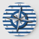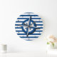 Compass and Stripes Pattern Nautical Inspired Large Clock
