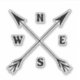 Compass illustration with arrows and north, east, south, west decoration on white background