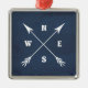 Compass illustration with arrows and north, east, south, west decoration on blue grunge background