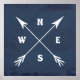 Compass illustration with arrows and north, east, south, west decoration on blue grunge background