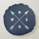 Compass illustration with arrows and north, east, south, west decoration on blue grunge background