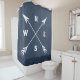 Compass illustration with arrows and north, east, south, west decoration on blue grunge background