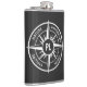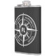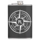 Compass star in black and white with emblems wanderlust, nature, travel and explore that are customisable so you can write your own texts. In the centre of the star is a personalised monogram. Perfect for nature lovers hikers and travellers.