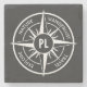 Compass star in black and white with emblems wanderlust, nature, travel and explore that are customisable so you can write your own texts. In the centre of the star is a personalised monogram. Perfect for nature lovers hikers and travellers.