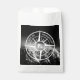 Compass star with black and white photograph of dramatic snowy mountains with milky clouds. With emblems wanderlust, nature, travel and explore that are customisable so you can write your own texts. In the centre of the star is a personalised monogram. Perfect for nature lovers hikers and travellers.