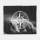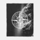 Compass star with black and white photograph of dramatic snowy mountains with milky clouds. With emblems wanderlust, nature, travel and explore that are customisable so you can write your own texts. In the centre of the star is a personalised monogram. Perfect for nature lovers hikers and travellers.
