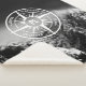 Compass star with black and white photograph of dramatic snowy mountains with milky clouds. With emblems wanderlust, nature, travel and explore that are customisable so you can write your own texts. In the centre of the star is a personalised monogram. Perfect for nature lovers hikers and travellers.