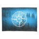 Compass star with a photo of a fog in a frosty winter spruce forest with emblems wanderlust, nature, travel and explore that are customisable so you can write your own texts. In the centre of the star is a personalised monogram. Perfect for nature lovers hikers and travellers.