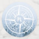 Compass star with a photo of a fog in a frosty winter spruce forest with emblems wanderlust, nature, travel and explore that are customisable so you can write your own texts. In the centre of the star is a personalised monogram. Perfect for nature lovers hikers and travellers.