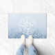 Compass star with a photo of a fog in a frosty winter spruce forest with emblems wanderlust, nature, travel and explore that are customisable so you can write your own texts. In the centre of the star is a personalised monogram. Perfect for nature lovers hikers and travellers.