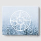 Compass star with a photo of a fog in a frosty winter spruce forest with emblems wanderlust, nature, travel and explore that are customisable so you can write your own texts. In the centre of the star is a personalised monogram. Perfect for nature lovers hikers and travellers.