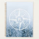 Compass star with a photo of a fog in a frosty winter spruce forest with emblems wanderlust, nature, travel and explore that are customisable so you can write your own texts. In the centre of the star is a personalised monogram. Perfect for nature lovers hikers and travellers.