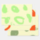 This set of three wrapping papers is made up of a system of light and medium greens and red artistic spots and lines that draw the yellowish white surfaces, each in their own way.