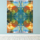 Vibrant colours blend into an abstract symmetrical pattern featuring circular and organic shapes. A mix of blues, oranges, and greens creates a dynamic and harmonious visual effect.