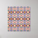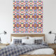 A symmetrical pattern bursts with vibrant colours and intricate geometrical shapes. The repetitive design features hues of blue, orange, pink, and red, creating a kaleidoscopic effect.