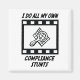 I Do All My Own Compliance Stunts. If Compliance is your hobby, occupation, or obsession, show it with great Compliance t-shirts, mugs, stickers, and more. They're also great gifts for other Compliance fans!