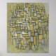 Composition in Brown and Grey by Piet Mondrian is a vintage abstract cubism piece featuring a grid of brown and grey rectangular forms reflecting Mondrian's exploration of universal balance and harmony. AKA Gemälde no. II or Composition no. IX.