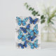 Vertical composition of realistic, blue and white morpho butterflies on grey textured background. Morpho blue butterfly.