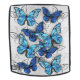 Vertical composition of realistic, blue and white morpho butterflies on grey textured background. Morpho blue butterfly.
