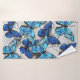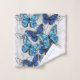 Vertical composition of realistic, blue and white morpho butterflies on grey textured background. Morpho blue butterfly.