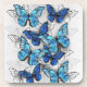 Vertical composition of realistic, blue and white morpho butterflies on grey textured background. Morpho blue butterfly.