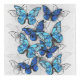 Vertical composition of realistic, blue and white morpho butterflies on grey textured background. Morpho blue butterfly.