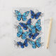 Vertical composition of realistic, blue and white morpho butterflies on grey textured background. Morpho blue butterfly.