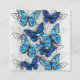 Vertical composition of realistic, blue and white morpho butterflies on grey textured background. Morpho blue butterfly.