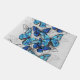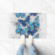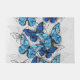 Vertical composition of realistic, blue and white morpho butterflies on grey textured background. Morpho blue butterfly.