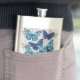 Vertical composition of realistic, blue and white morpho butterflies on grey textured background. Morpho blue butterfly.
