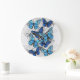 Composition of White and Blue Butterflies Large Clock
