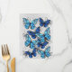 Vertical composition of realistic, blue and white morpho butterflies on grey textured background. Morpho blue butterfly.