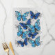 Vertical composition of realistic, blue and white morpho butterflies on grey textured background. Morpho blue butterfly.