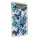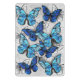 Vertical composition of realistic, blue and white morpho butterflies on grey textured background. Morpho blue butterfly.