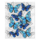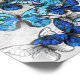 Vertical composition of realistic, blue and white morpho butterflies on grey textured background. Morpho blue butterfly.