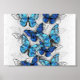 Vertical composition of realistic, blue and white morpho butterflies on grey textured background. Morpho blue butterfly.