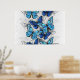 Vertical composition of realistic, blue and white morpho butterflies on grey textured background. Morpho blue butterfly.
