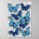 Vertical composition of realistic, blue and white morpho butterflies on grey textured background. Morpho blue butterfly.