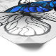 Vertical composition of realistic, blue and white morpho butterflies on grey textured background. Morpho blue butterfly.