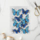 Vertical composition of realistic, blue and white morpho butterflies on grey textured background. Morpho blue butterfly.