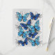Vertical composition of realistic, blue and white morpho butterflies on grey textured background. Morpho blue butterfly.