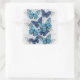 Vertical composition of realistic, blue and white morpho butterflies on grey textured background. Morpho blue butterfly.