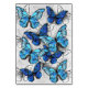 Vertical composition of realistic, blue and white morpho butterflies on grey textured background. Morpho blue butterfly.