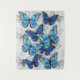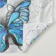 Vertical composition of realistic, blue and white morpho butterflies on grey textured background. Morpho blue butterfly.