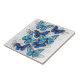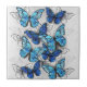 Vertical composition of realistic, blue and white morpho butterflies on grey textured background. Morpho blue butterfly.