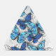 Vertical composition of realistic, blue and white morpho butterflies on grey textured background. Morpho blue butterfly.