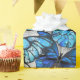Vertical composition of realistic, blue and white morpho butterflies on grey textured background. Morpho blue butterfly.