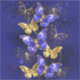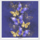 Composition of luxurious sapphire and gold jewellery butterflies on blue textured background.