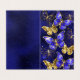 Composition of luxurious sapphire and gold jewellery butterflies on blue textured background.